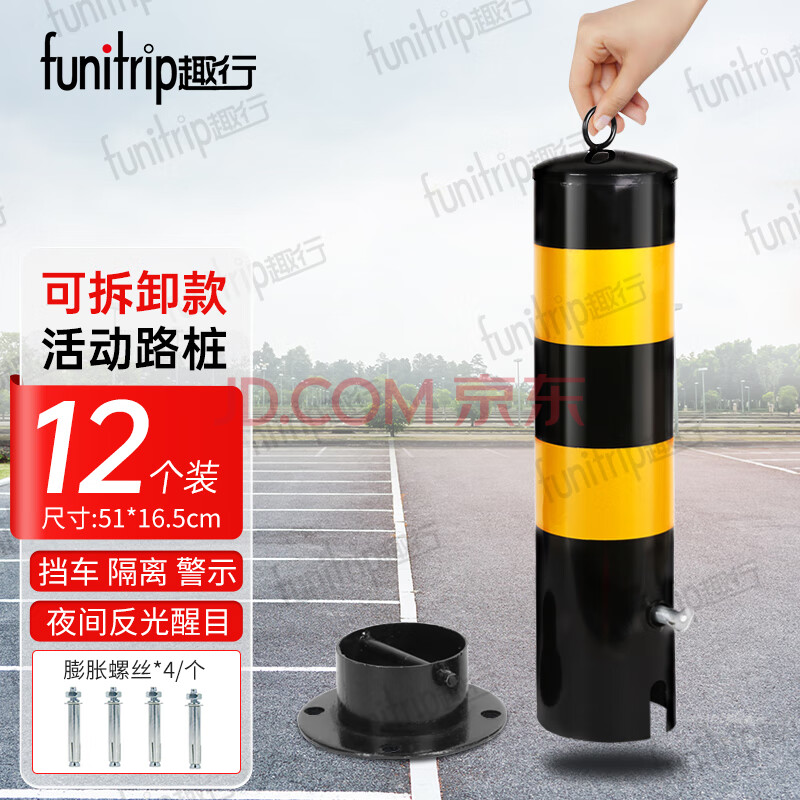 趣行 金属带钥匙活动路桩 停车位立柱 警示柱交通挡车柱车位锁 12个装