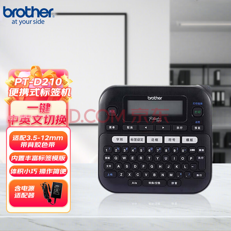 兄弟(brother)PT-D210标签打印机 标签打印机 便携式入门级标签机多种供电方式(台)