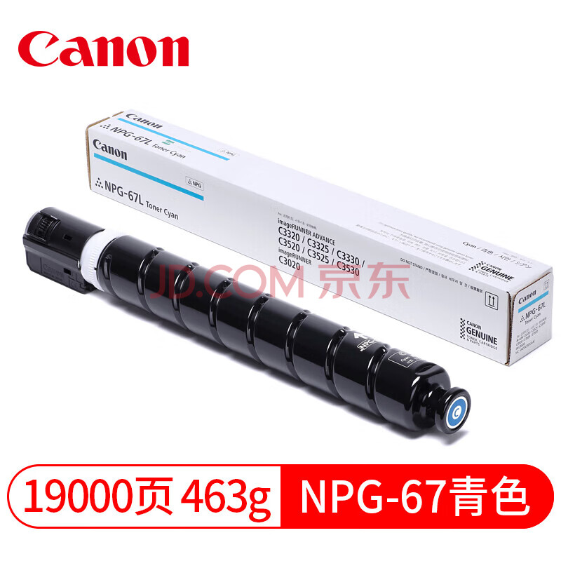 佳能NPG-67C原装墨粉 (适用C3020/3025/3520/3525/3320/3325/3330)高容量19000页 青色