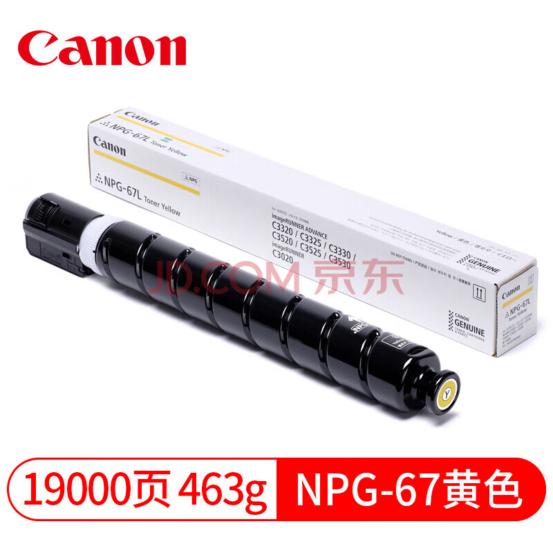 佳能NPG-67Y 原装墨粉 (适用C3020/3025/3520/3525/3320/3325/3330)高容量19000页 黄色