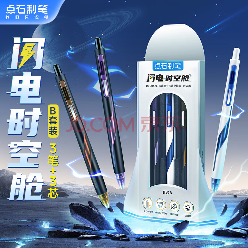 点石闪电时空舱低重心按动中性笔高颜值0.5黑笔学生刷题作业签字笔开学季必备3157E【套装B】3笔+3芯