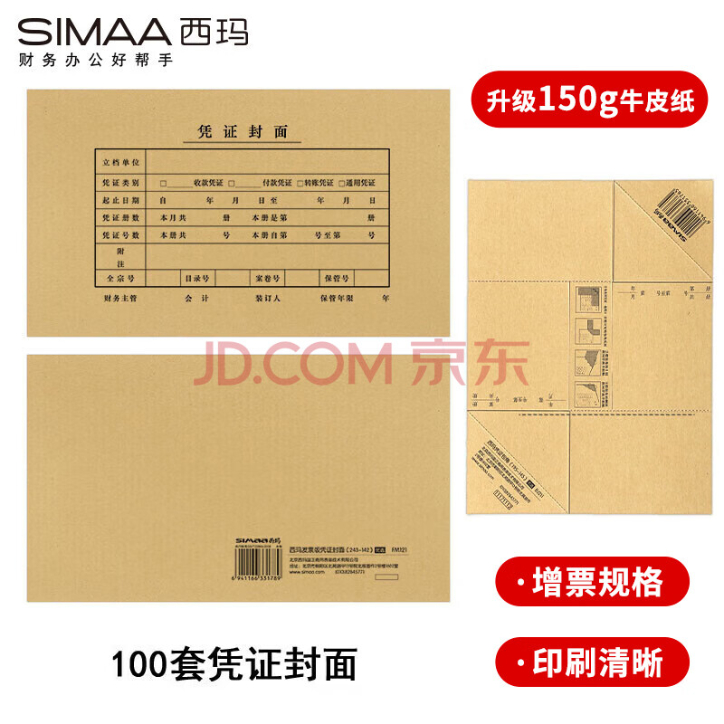 西玛(SIMAA)发票版凭证封面包角装订包(封面100套 包角100个)243*142mm费用报销单记账凭证打印纸150g