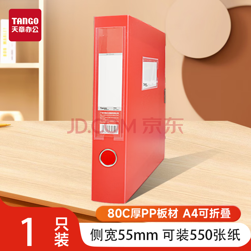 天章(TANGO)A4档案盒加厚文件盒 工会党建资料党员档案盒支部个人档案盒55mm 红色1个装