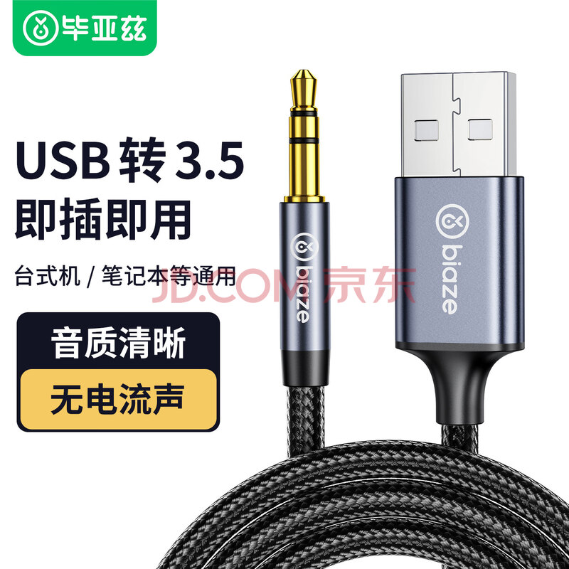 毕亚兹 usb转3.5mm音频线接口 1米3节圆孔台式电脑笔记本耳机音响声音转换器对接外置音频转接