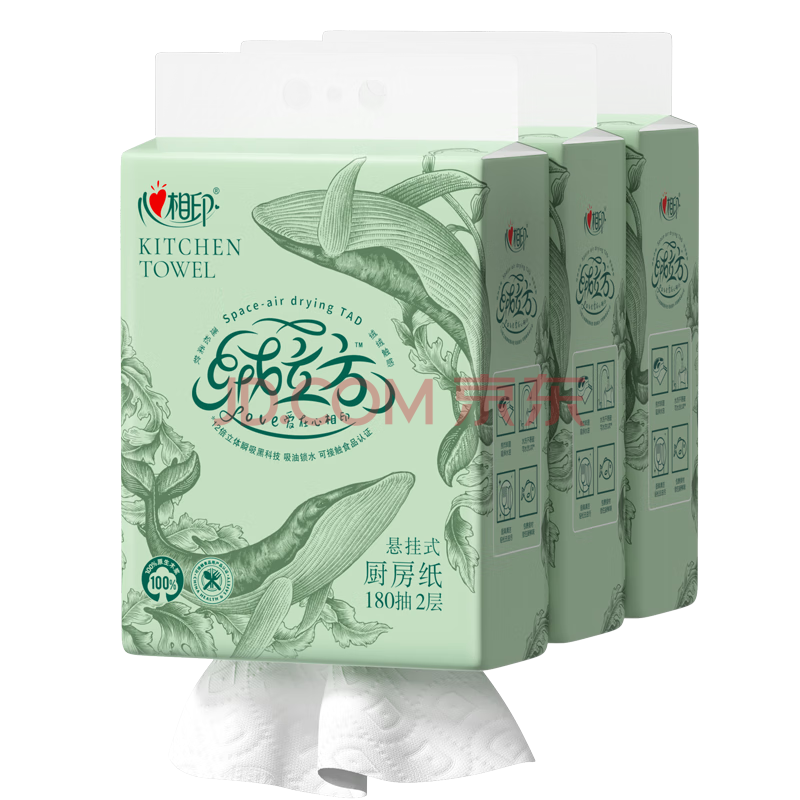 心相印【田栩宁同款】绒立方厨房用纸悬挂式抽纸180抽*3提 可接触食物级