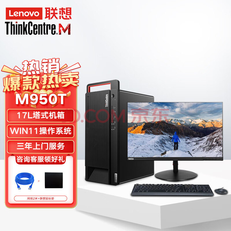 联想电脑高端办公电脑台式机ThinkCentre M950T i7-13700/16G/2T+256G/DVDRW/2G独显/W11H/27英寸