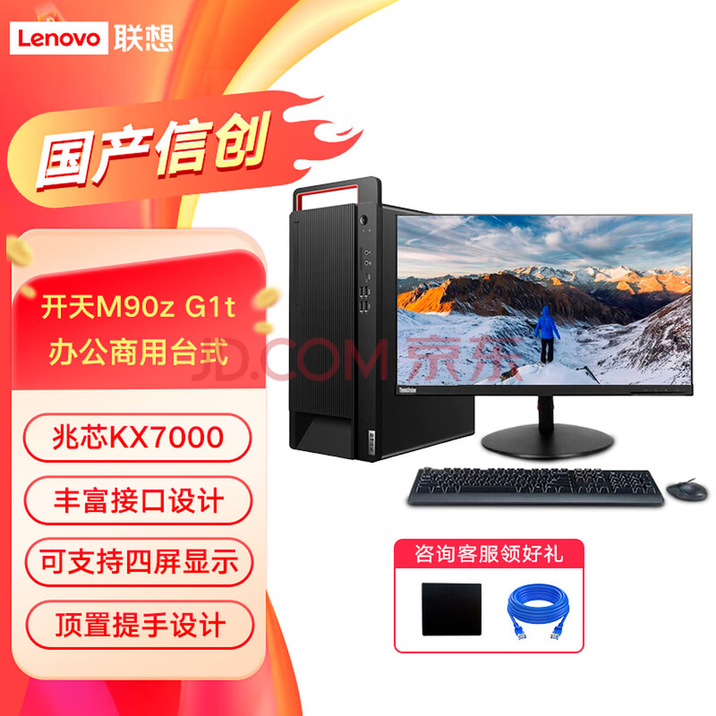 联想国产信创商用台式电脑开天M90z G1t旗舰台式机(兆芯KX7000/16G/1TSSD/集显/27英寸/授权版)