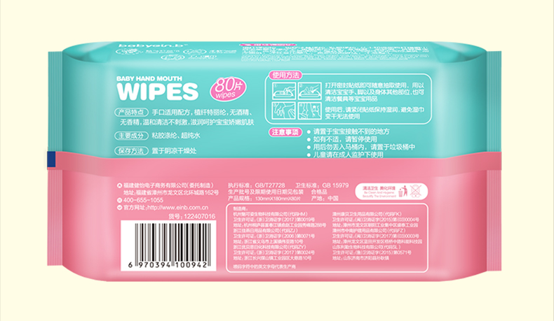 怡恩贝(ein.b)婴儿护肤柔湿巾 80片*10包 手口湿纸巾带盖抽纸湿巾
