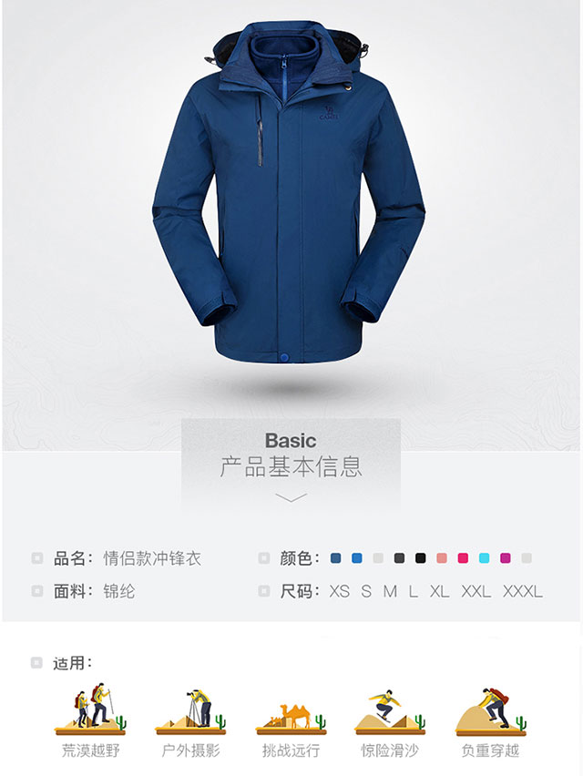 骆驼户外(CAMEL) 冲锋衣男女防污防水三合一两件套冲锋衣男 A7W217127 普蓝 L
