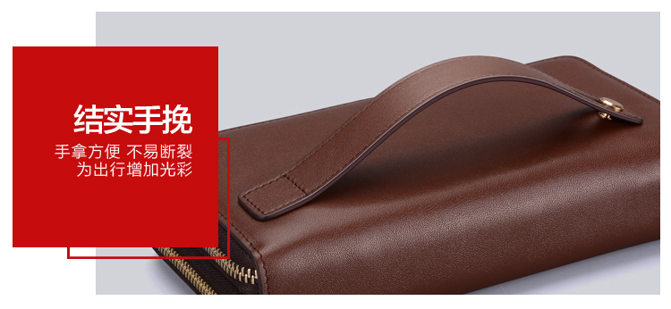 七匹狼男士手包 头层牛皮双拉链手拿包商务款多功能包手机包新款