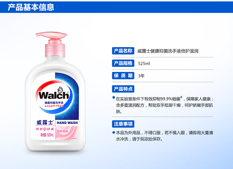 威露士(Walch)健康抑菌洗手液(倍护滋润)525ml