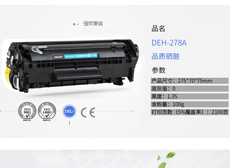 得力(deli) DEH-278A 黑色硒鼓 (适用惠普 P1560/P1566/P1606/P1606dn/M1536dnf)