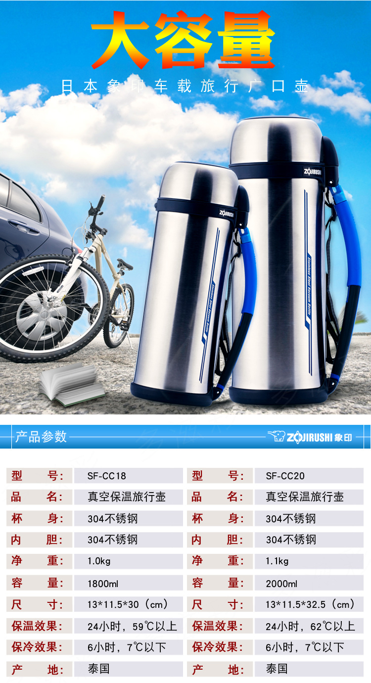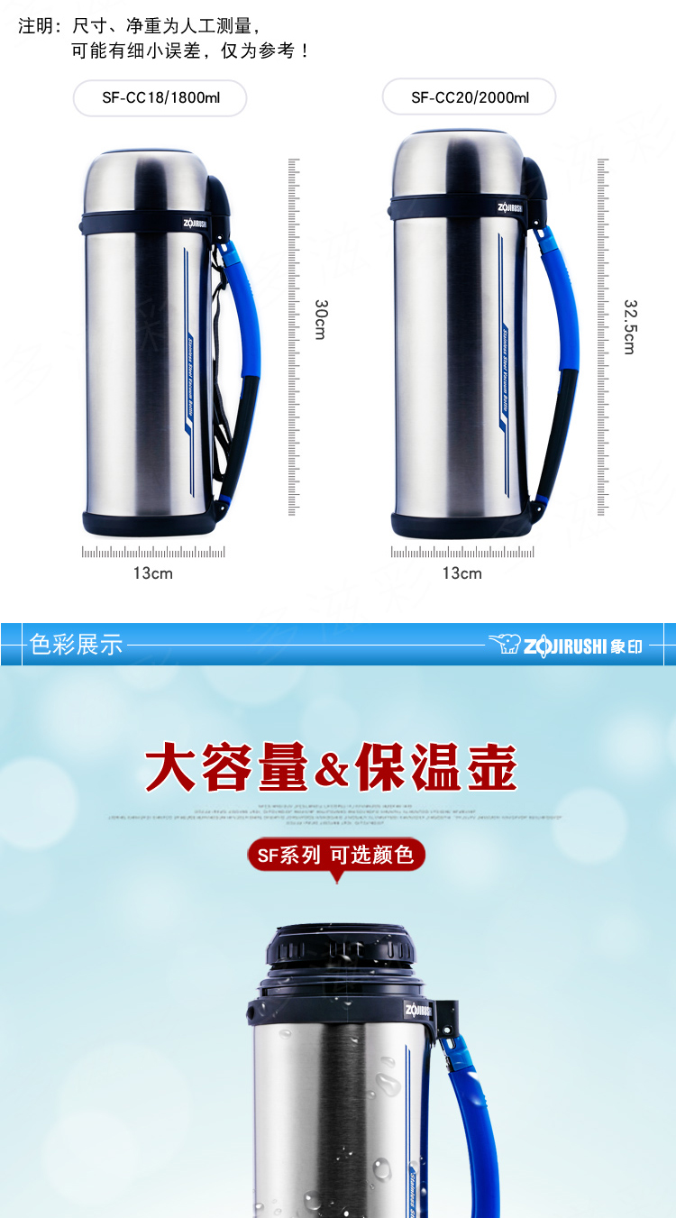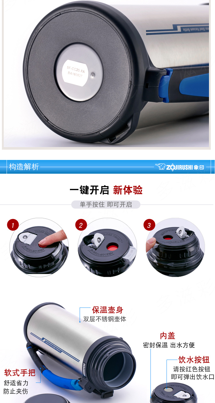 象印不锈钢真空大容量热水壶保温瓶SF-CC20-XA2000ML