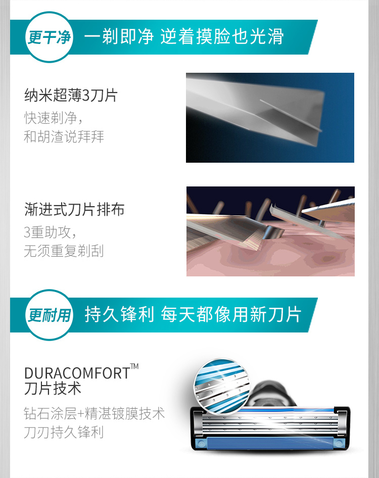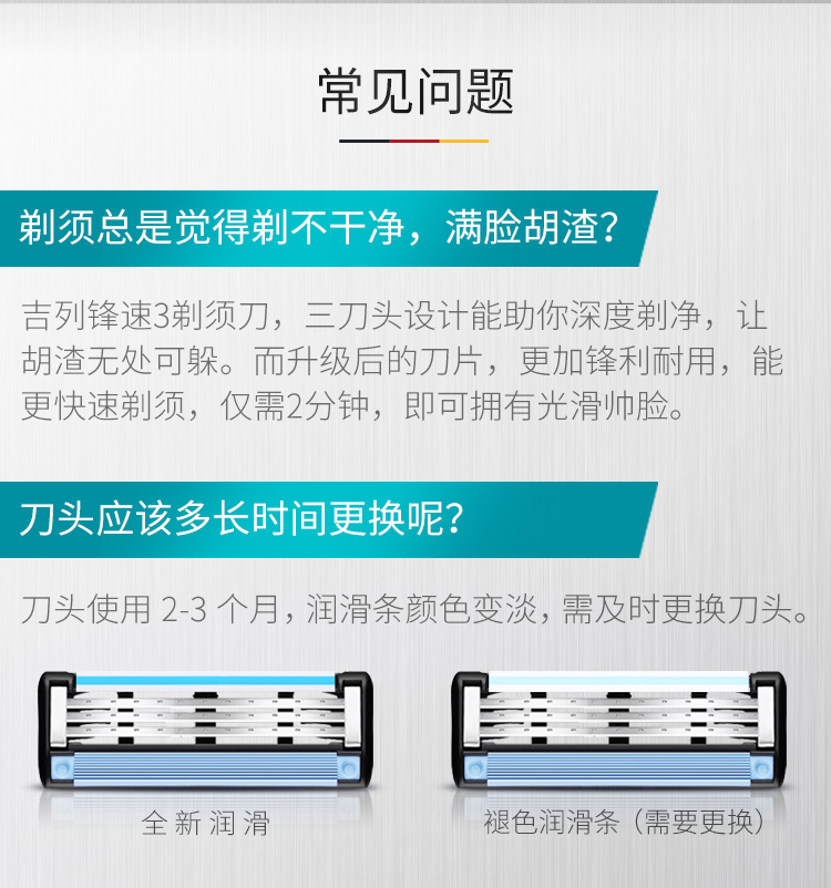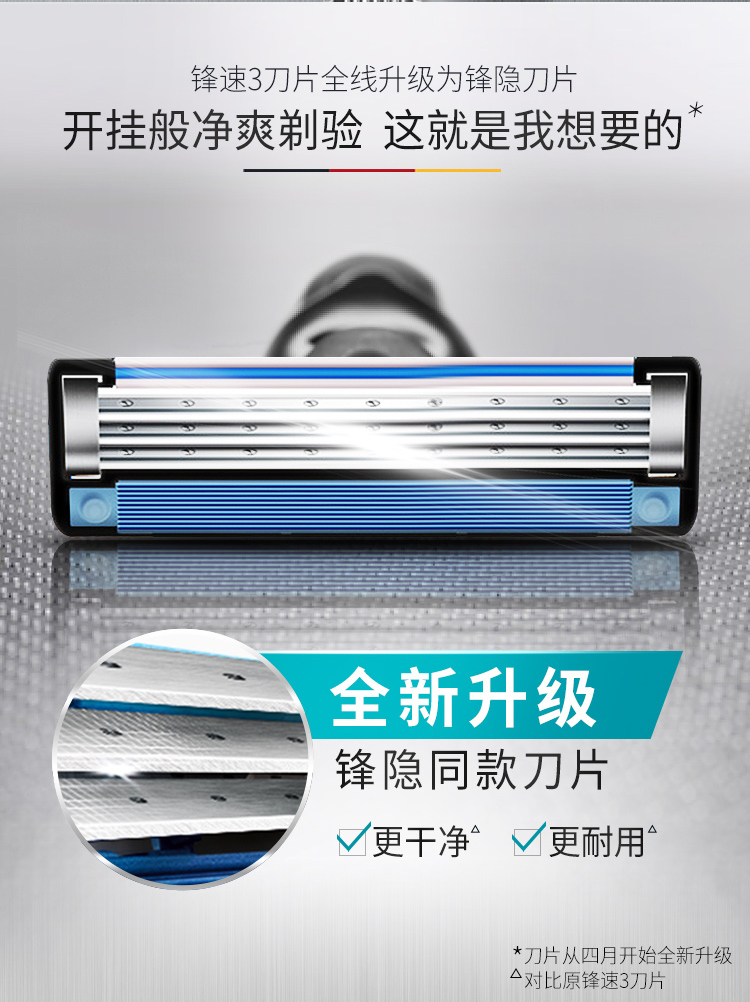 吉列手动剃须刀刮胡刀刀片锋速3突破(4刀头)(新老包装随机发货)