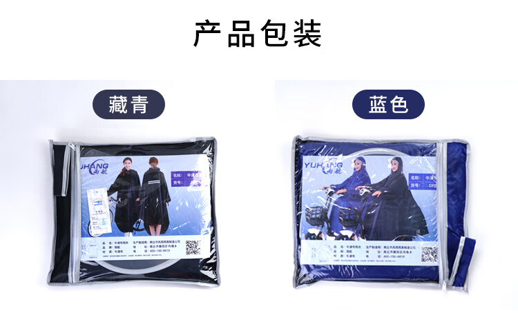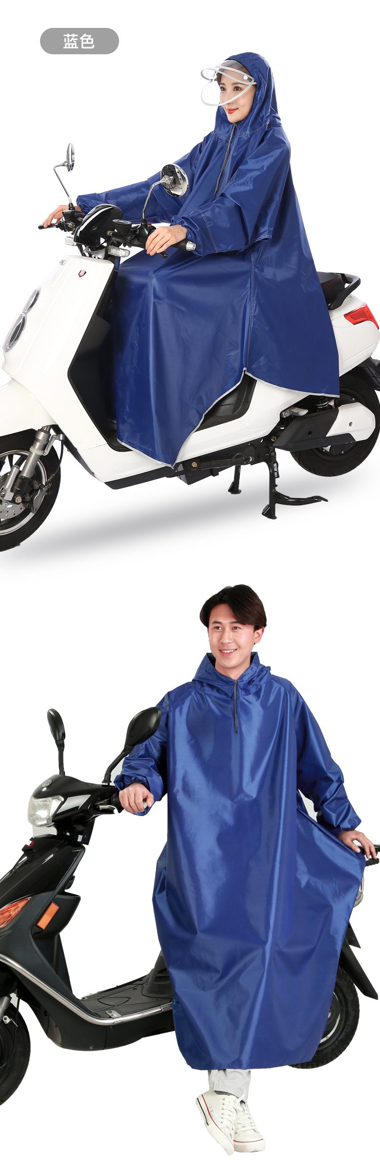 雨航 YUHANG 电动电瓶摩托车雨披单人男女成人骑行带袖加大加厚反光条双帽檐雨衣 XXXXL 蓝色