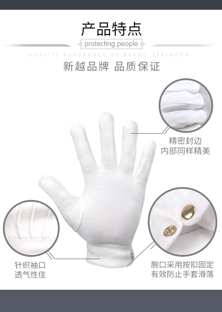 新越昌晖礼仪手套 加厚劳保手套棉手套 珠宝文玩把玩手套 检阅司机白手套透气男女10付/均码 B11419