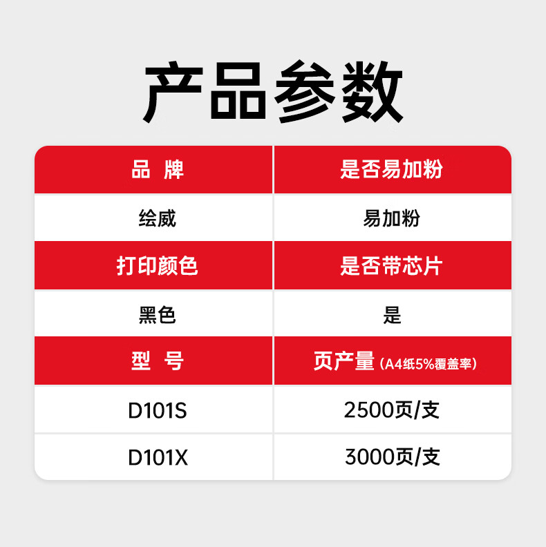 绘威MLT-D101S硒鼓 适用三星SCX-3401 3400 3405 3406粉盒ML-2161 2162 2164 2165打印机硒鼓 易加粉 中文版