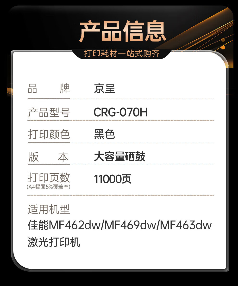 京呈CRG070硒鼓适用佳能MF462dw MF469dw MF463dw激光打印机黑白碳粉硒鼓 【11000页】CRG-070H大容量硒鼓 带芯片
