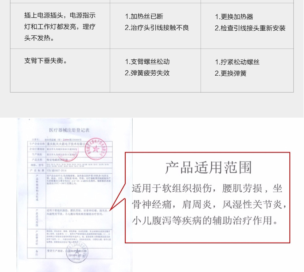 3、辐射距离不宜过近,否则容易发生皮肤灼伤(如发红或起水泡)或误触辐射头而被烫伤,也不宜距离过远。